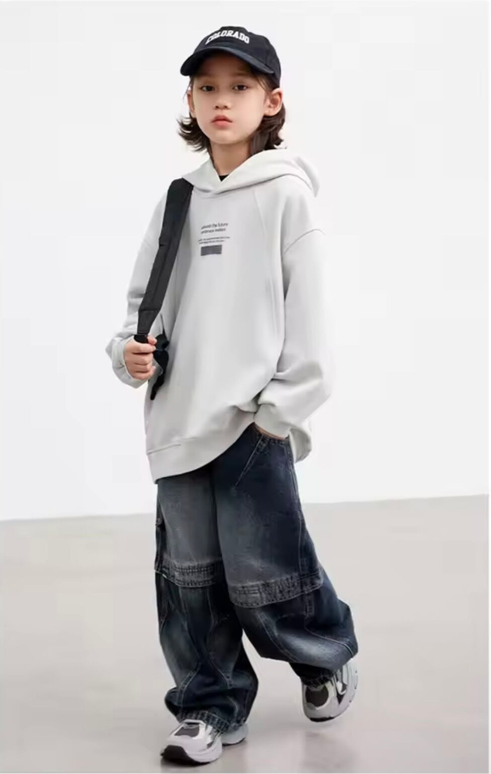 裾からロンTを少し覗かせるだけで、